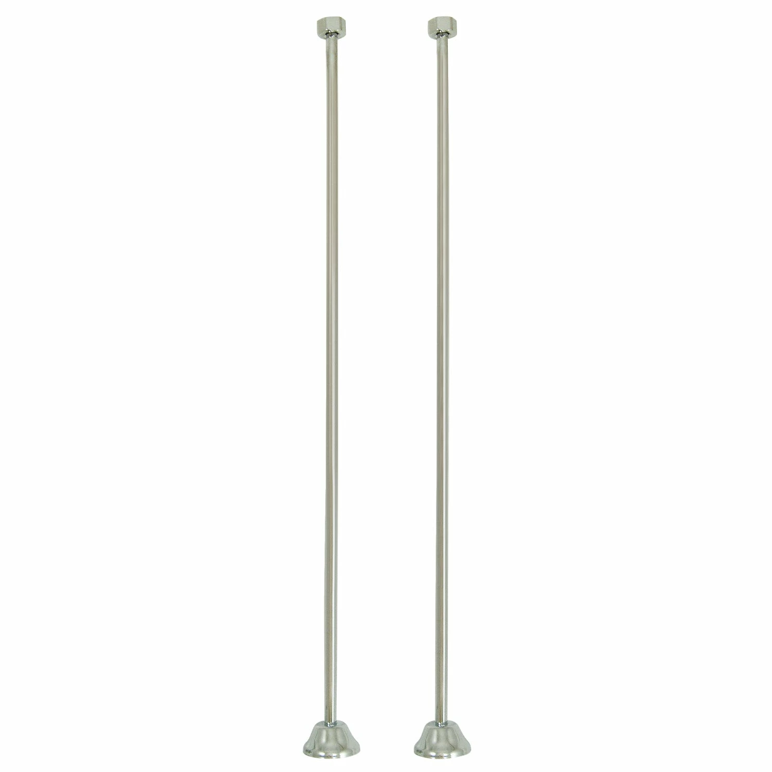 Complete your bath design with the these straight water supplies from Kingston Brass. The supply lines are constructed from high quality brass for strong durability and reliability for years to come. The supplies are sold in pairs featuring 29-1/8 inch length with a 2-3/8 inch diameter on the flanges.